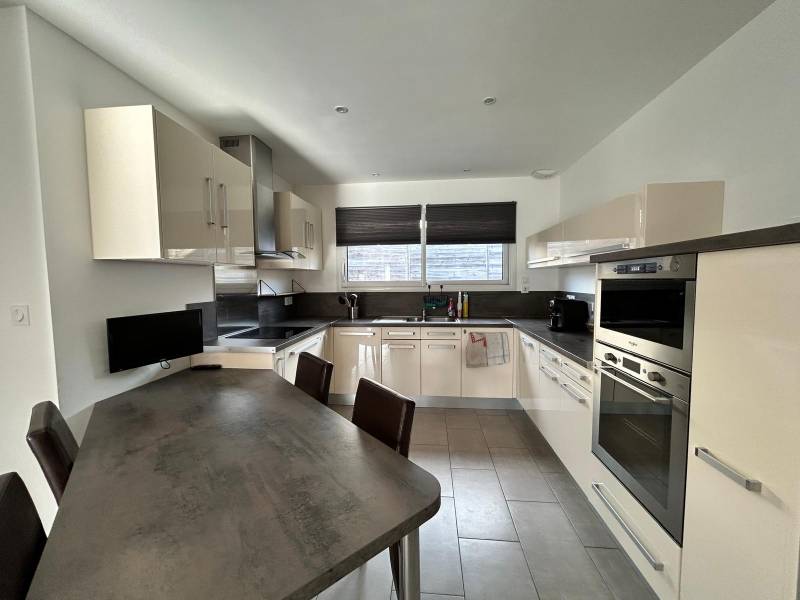 D'une superficie habitable de 179 m², elle est implantée sur une parcelle de près de 450 m², alliant confort de vie et fonctionnalité. Dès l’entrée, vous serez accueilli par un vaste séjour-salon de 55 m² baigné de lumière, idéal pour les moments de convivialité. Une cuisine ouverte, entièrement aménagée et équipée, prolonge harmonieusement l’espace de vie. Au rez-de-chaussée, une première chambre, une salle d’eau, une buanderie ainsi qu’un grand garage de 34 m² complètent les prestations.